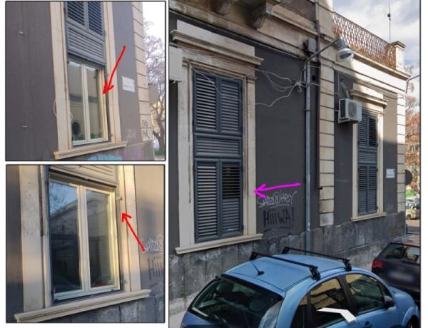 Una pagina social denuncia il furto di ante dalle finestre al piano terra in zona Piazza Dante; sui commenti toni offensivi e accuse sul riciclaggio.