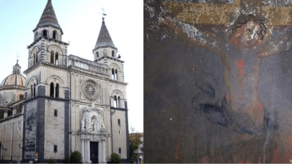 Scoperta cripta con affresco raffigurante Gesù crocifisso nella Cattedrale di Acireale